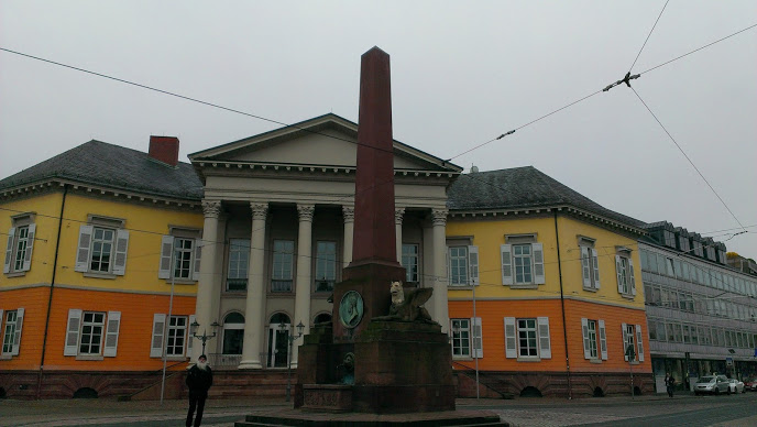Today we visited Karlsruhe, one of the big german cities in the Baden-Württemberg state. Before going there I read there has been some speculation about this city being used as a model for Washington, D.C. (since both cities have a centre from which the streets radiate). I couldn't stop thinking about this point when we were walking in the city center: When we passed by the Rondellplatz we observed this obelisk that might be in fact a model for the American one. Probably this city is very nice during the summer time, but today we realised the spring hasn't come yet to Karlsruhe because it was rainy, grey and cold ... brrrr.