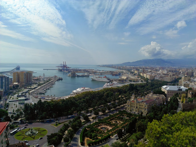 We just came back from Malaga where we enjoyed some splendid weather during the last 4 days. We went there to meet some friends of my GF and enjoy the last bit of Spanish summer since the Autumn and cold weather is approaching fast to Switzerland. This was the second time I visited the hometown of Pablo Picasso, but this time around I spent more time there and I discovered a city with some very interesting history reflected in places such as the Alcazaba and the Gibralfaro castle or the Malaga cathedral. The first time I completely missed this church is called “la manquita” (the one armed lady), because the south tower was never finished. Malaga is perse a very interesting city to visit, but it can also be useful a starting point to visit many places in Andalalucia. In this picture you can see the Malaga port area from the uphill road that take you to the Gibralfaro castle.