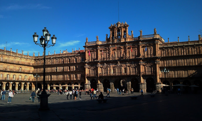 Probably the shortest city break I have ever done in all these years, but one of the most interesting ones at the same time was the hour I spent in Salamanca back in 2009. I didn't plan on purpose to visit the city for such a short time but it was rather a stop over on my way from Llerena in Extremadura to Ourense in Galicia. I was visiting an old friend from high school in Extremadura, but I was also going to the wedding of a Spanish friend in Galicia and the only flight that I could find was from Dublin to Madrid so ended up renting a car and driving across the Iberian peninsula. I decided to break the trip to Ourense in two and I was glad I did it, because Salamanca turned out to be a beautiful city. I definitively would like to come back and spent more time. Here you can find a picture of the Plaza Mayor.