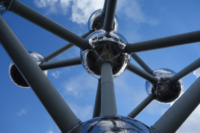I decided this time to visit the Atomium, an steel structure in the north part of the city, to get a good Panoramic view and take some pictures and I was not disappointed. I was rewarded with some interesting aerial spots including minieurope (a miniature park with reproductions of monuments in the European Union) and some other buildings created for the 1958 Brussels World's Fair. I find it interesting that even if the Atomium is not as famous a the Eiffel tower in Paris, both were "temporary" steel structures created for world fairs.